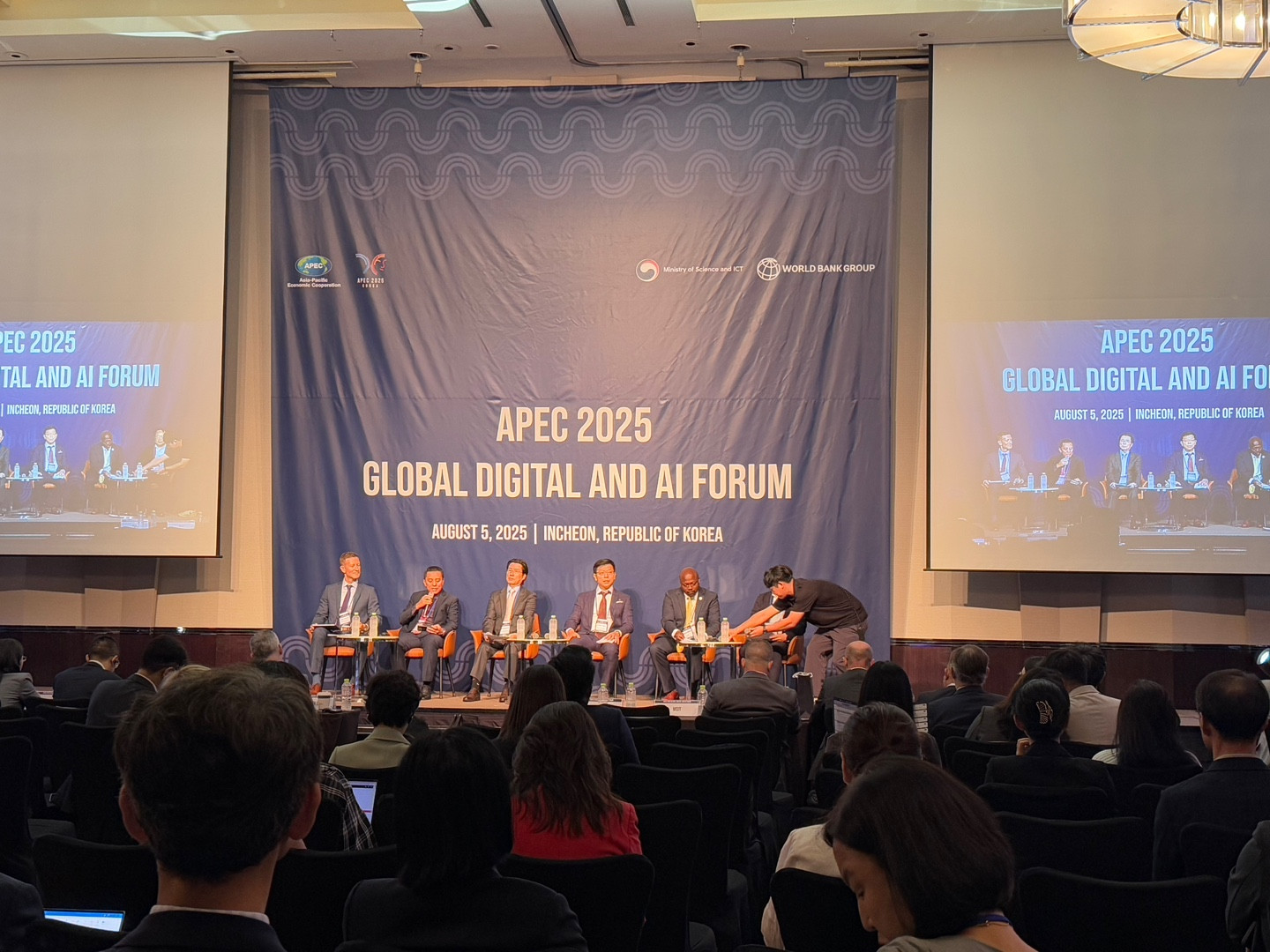 과학기술정보통신부는 오늘(5일) 인천 송도 쉐라톤그랜드호텔에서 세계은행과 공동으로 아시아태평양 경제협력체(APEC) 글로벌 디지털·AI포럼을 개최했다며 이같이 밝혔습니다.