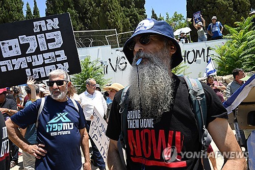 예루살렘에서 열린 반(反) 네타냐후 시위[UPI=연합뉴스 자료사진][UPI=연합뉴스 자료사진]베냐민 네타냐후 이스라엘 총리가 팔레스타인 가자지구를 완전히 점령하겠다는 의중을 내비쳤다가 국내외의 거센 저항에 직면했습니다.