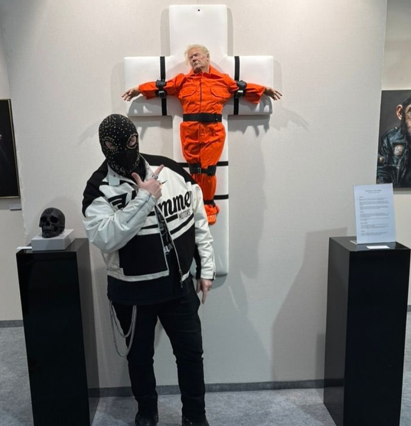 [사진 출처 = 인스타그램][사진 출처 = 인스타그램]십자가에 매달린 도널드 트럼프 조각상을 전시하려던 스위스의 한 갤러리가 안전 문제를 이유로 전시를 취소했습니다.
