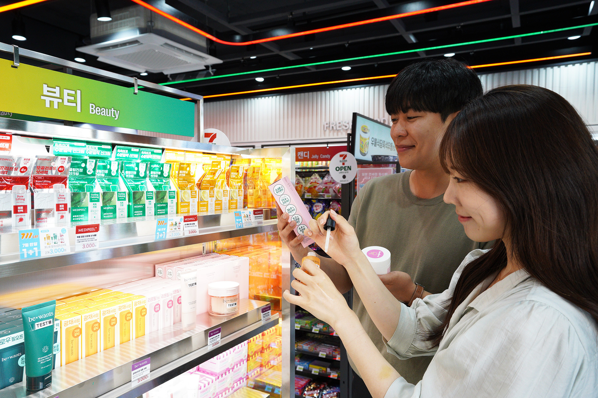 세븐일레븐은 지난 6월부터 50여 개 점포에 화장품 테스터존을 시범운영 중입니다.