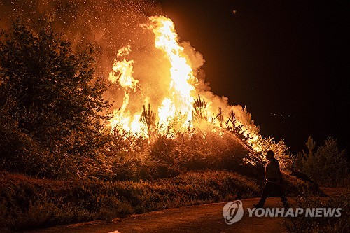 스페인 갈리시아지방 산불 진압[EPA=연합뉴스 제공][EPA=연합뉴스 제공]40도가 훌쩍 넘는 불볕더위로 스페인과 포르투갈 곳곳에서 산불이 연일 확산하고 있습니다.