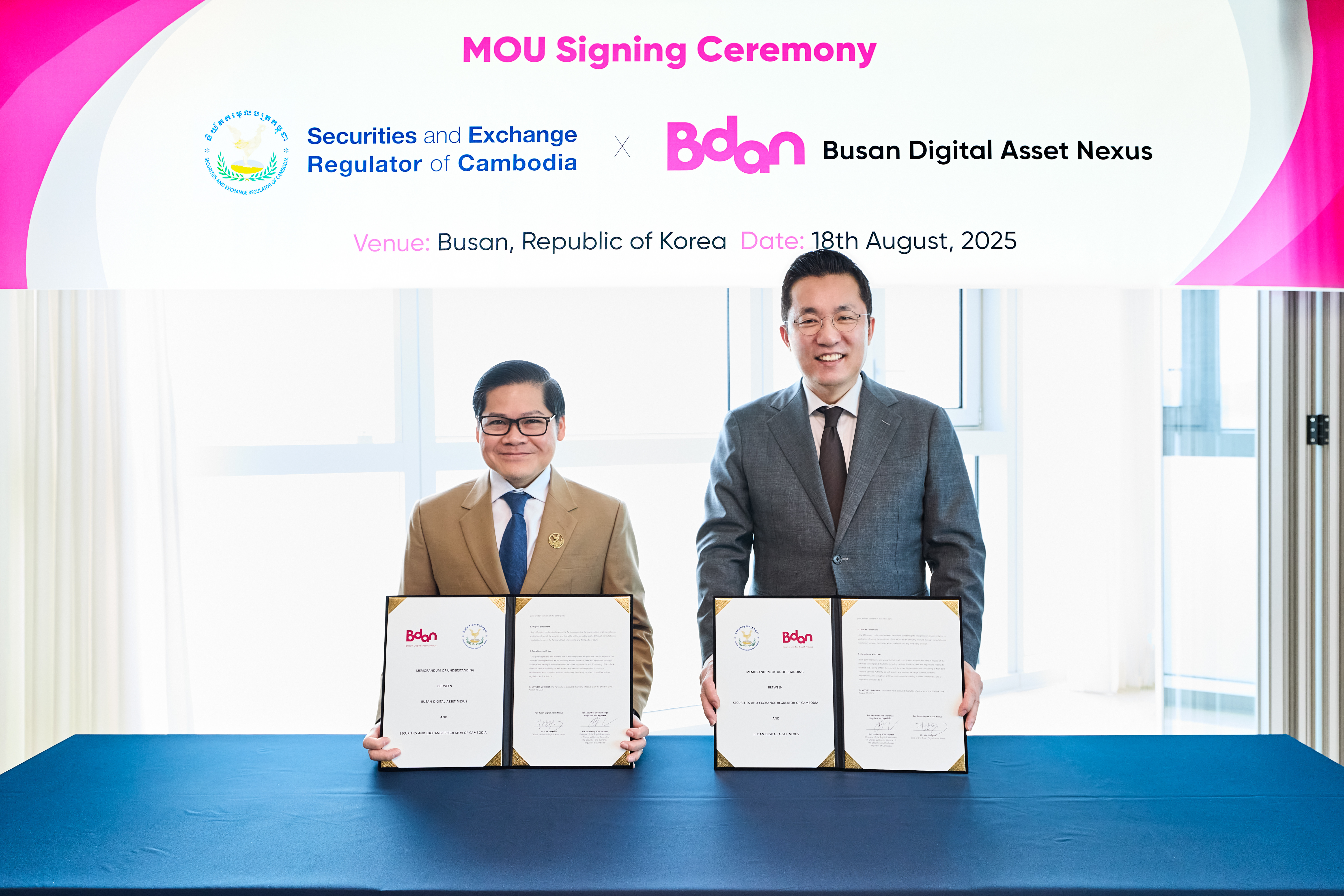 [부산디지털자산거래소 제공][부산디지털자산거래소 제공]부산디지털자산거래소(비단)이 캄보디아 증권감독위원회와 '타깃 2026 블록체인 시티 부산' 도시 모델 수출을 위한 업무협약(MOU)을 체결했다고 오늘(18일) 밝혔습니다.