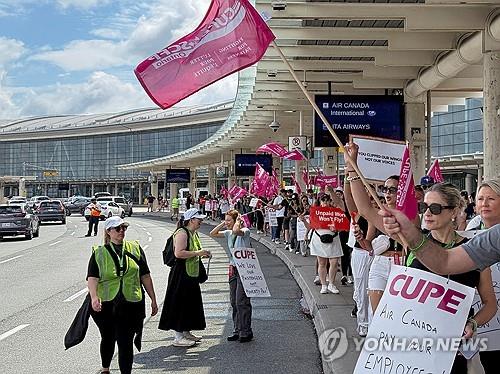 캐나다 공공노조 소속 에어캐나다 승무원 약 1만 명은 지상 대기 시간 등 비행 외 노동시간에 대한 임금 인상을 요구하며 지난 16일부터 파업을 시작했습니다.