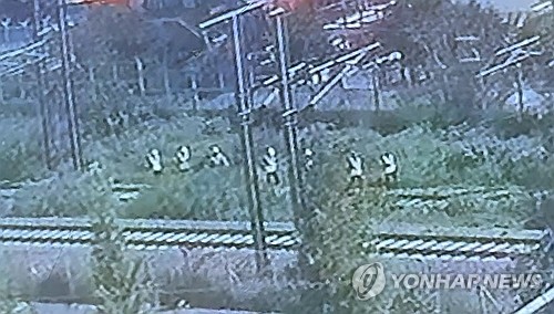 청도 열차사고 직전 작업자 이동 모습 담긴 CCTV(청도=연합뉴스) 지난 19일 오전 10시 45분께 경북 청도군 화양읍 삼신리 청도소싸움 경기장 인근 경부선 철로에서 작업자들이 이동하는 모습.