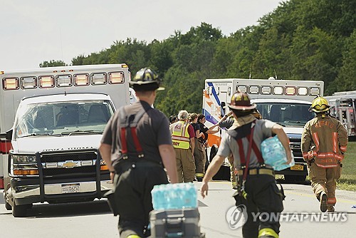 사고는 현지시간 22일 낮 12시30분쯤 버펄로에서 동쪽으로 40㎞가량 떨어진 펨브로크 지역의 90번 주(州)간 고속도로에서 발생했습니다.