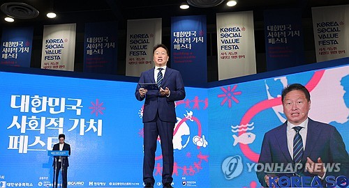 2024년 사회적 가치 페스타 개회사 하는 최태원 회장(서울=연합뉴스) 한상균 기자 = 최태원 대한상공회의소 회장이 12일 서울 코엑스에서 '제1회 대한민국 사회적 가치 페스타' 개회사를 하고 있다. 대한상의가 주최한 행사로 정부, 민간, 학계, 시민사회 등 200여개 기관·기업이 참여했다. 2024.9.12 xyz@yna.co.kr(서울=연합뉴스) 한상균 기자 = 최태원 대한상공회의소 회장이 12일 서울 코엑스에서 '제1회 대한민국 사회적 가치 페스타' 개회사를 하고 있다. 대한상의가 주최한 행사로 정부, 민간, 학계, 시민사회 등 200여개 기관·기업이 참여했다. 2024.9.12 xyz@yna.co.kr기술과 비즈니스 모델 혁신으로 사회적 문제 해결을 모색하는 기업·단체들의 행사 '대한민국 사회적가치 페스타'가 올해 2회째를 맞아 한층 큰 규모로 개막했습니다.