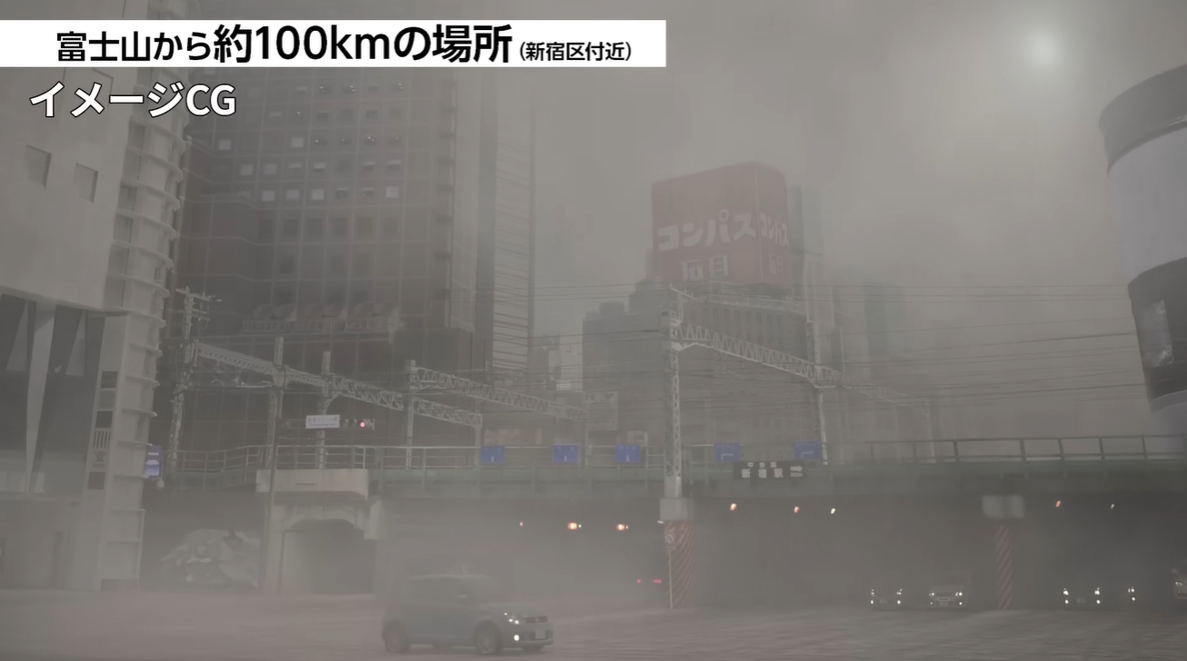 일본 정부가 제작한 CG 영상 일부. 화산재가 쌓인 신주쿠구일본 정부가 제작한 CG 영상 일부. 화산재가 쌓인 신주쿠구후지산에서 약 60㎞ 떨어진 가나가와현 사가미하라시에서는 분화 이틀 후 20㎝의 화산재가 쌓이는 것으로 추정됐습니다.