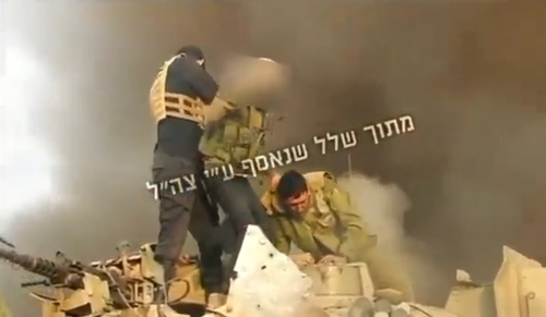 불이 붙어 검은 연기가 피어오르는 탱크에서 하마스 무장대원들이 군인들을 끌어내는 사이사이 화면 밖에서 누군가 잇따라 총을 쏘는 소리가 들립니다.