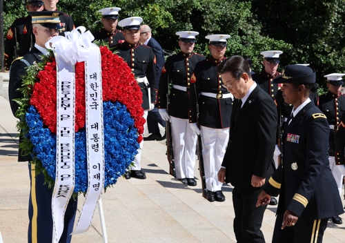 이재명 대통령, 알링턴 국립묘지 헌화[연합뉴스 제공][연합뉴스 제공]이재명 대통령은 순방 마지막 날인 현지시간 26일 워싱턴DC 인근 알링턴 국립묘지를 참배했습니다.