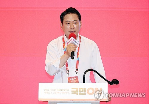 (끝)(인천=연합뉴스) 박동주 기자 = 국민의힘 장동혁 대표가 29일 인천국제공항공사 항공교육원에서 열린 2025 국민의힘 국회의원 연찬회에서 마무리 발언을 하고 있다. 2025.8.29
