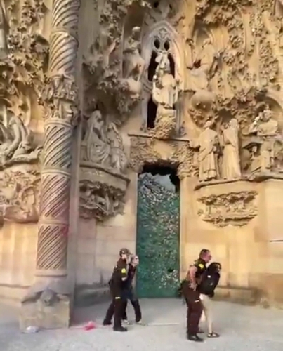 AFP 통신에 따르면 '미래 식물'이란 스페인 단체 소속 활동가 2명은 이날 사그라다 파밀리아의 외부 기둥 하단에 빨간색과 검은색 페인트를 뿌리고 "기후 정의"를 외쳤습니다.
