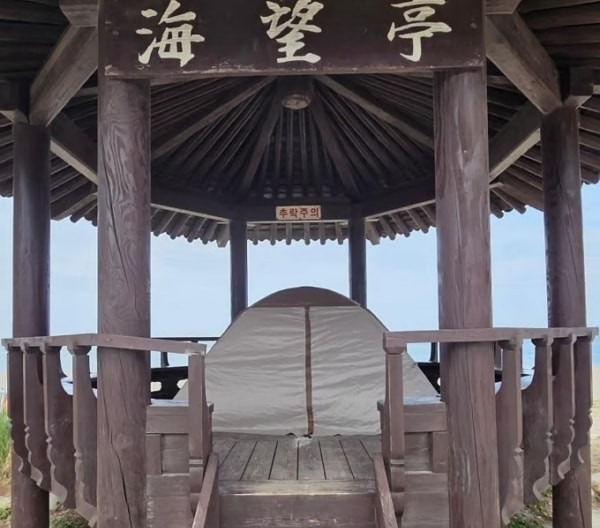 지난 6월 삼척시 근덕면 하맹방 해수욕장 인근 정자에 설치된 텐트[보배드림 캡처][보배드림 캡처]지난 6월 말에도 강원도 삼척의 한 정자 위에 캠핑족이 바닥에 피스를 박아 텐트를 고정한 모습이 전해져 논란이 된 바 있습니다.