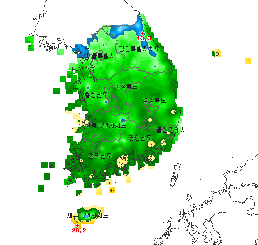 일 최저기온 지도 (노란색 표시 지역이 열대야)[기상청 제공][기상청 제공]연합뉴스TV 기사문의 및 제보 : 카톡/라인 jebo23
