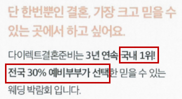 업체 주관 웨딩박람회에서도 '대한민국 최대 규모의 웨딩 페스티벌'이나 '320만 누적 최다 관람' 등으로 경쟁사업자보다 우월한 것처럼 거짓·과장 광고했습니다.