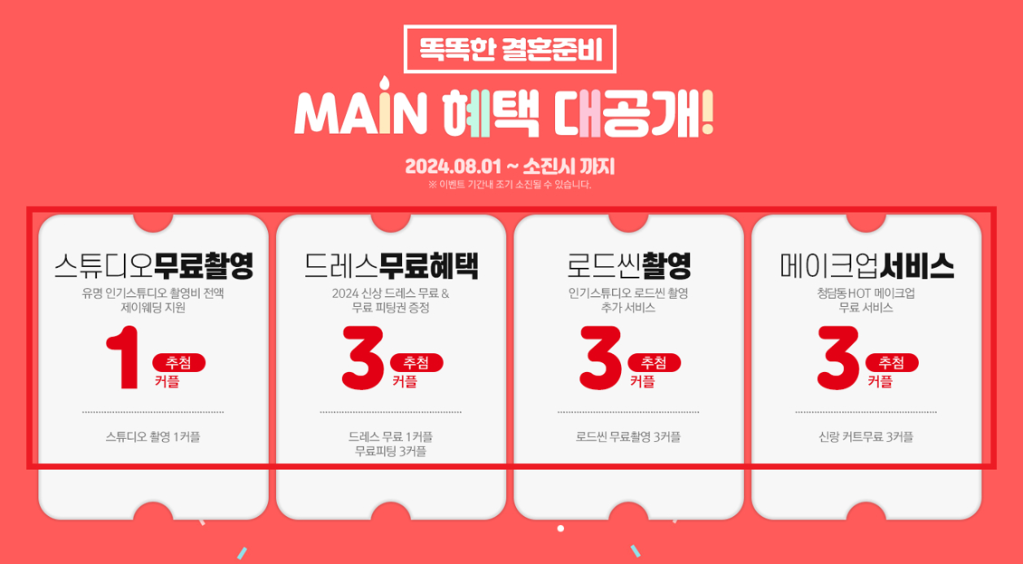 결혼준비대행업체 '제이웨딩' 부당 광고[공정거래위원회 제공][공정거래위원회 제공]'스튜디오 무료촬영 1커플', '드레스 무료혜택 3커플' 등 소비자 관심을 끄는 경품을 추첨을 통해 제공하는 것처럼 광고했지만 광고한 대로 경품을 제공하지 않은 사례도 있었습니다.