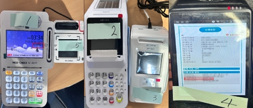 위장 가맹점 명의의 신용카드 결제 단말기 사진[서울경찰청 마약범죄수사대 제공. 재판매 및 DB 금지][서울경찰청 마약범죄수사대 제공. 재판매 및 DB 금지]문자메시지로 스마트폰에 악성앱을 깔게 하는 스미싱으로 해외 신용카드 정보를 탈취하고, 국내에 위장 가맹점을 차려 결제하는 방식으로 수십원을 빼돌린 일당이 경찰에 붙잡혔습니다.