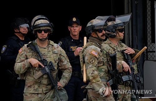 LA에 도착한 미 캘리포니아주 방위군[로이터=연합뉴스. 재판매 및 DB 금지][로이터=연합뉴스. 재판매 및 DB 금지]