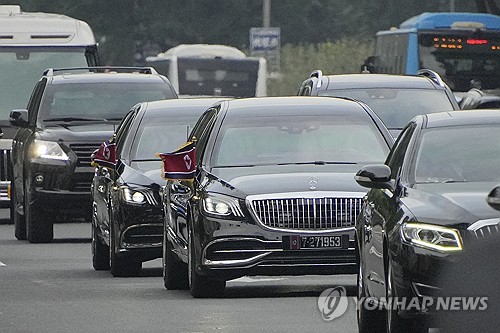 베이징역 인근에서 이동하는 김정은 북한 국무위원장 의전차량4일 오후 베이징역 인근에서 김정은 북한 국무위원장의 의전차량 행렬이 이동하고 있다. [연합뉴스 제공]4일 오후 베이징역 인근에서 김정은 북한 국무위원장의 의전차량 행렬이 이동하고 있다. [연합뉴스 제공]