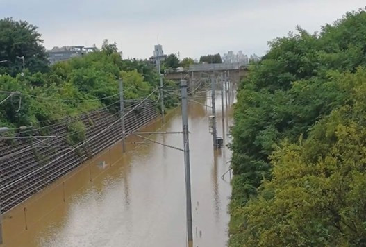 침수 피해 지역. 사진=연합뉴스TV 자료화면집중호우로 중단됐던 전라선 익산~전주 구간 열차 운행이 오늘(7일) 오전 10시부터 재개됐습니다.