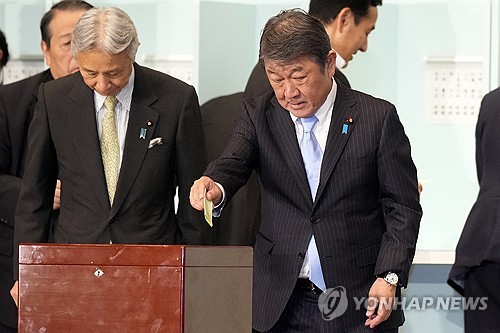 작년 9월 자민당 총재 선거에서 투표하는 모테기 전 간사장[EPA=연합뉴스 자료사진 제공][EPA=연합뉴스 자료사진 제공]이시바 시게루 일본 총리가 사임 의사를 표명한 지 하루 만에, 집권 자민당 소속 유력 정치인들이 총재 선거 출마에 의욕을 나타내고 있습니다.