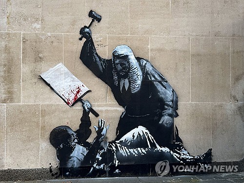 영국 런던 왕립법원 외벽에 그려진 뱅크시의 벽화[로이터=연합뉴스][로이터=연합뉴스]'얼굴 없는 예술가'로 불리는 영국 벽화 작가 뱅크시의 신작 벽화가 런던의 법원 외벽에 모습을 드러냈지만, 바로 철거 운명을 맞게 됐습니다.