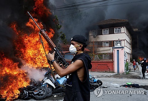 네팔 카트만두 대법원 청사 앞에서 총기 든 시위자[로이터 연합뉴스. 재판매 및 DB 금지][로이터 연합뉴스. 재판매 및 DB 금지]네팔 군 당국은 성명에서 "일부 집단이 현재 불안을 이용해 민간인과 정부 재산 모두에 피해를 주고 있다"며 자제를 촉구했습니다.