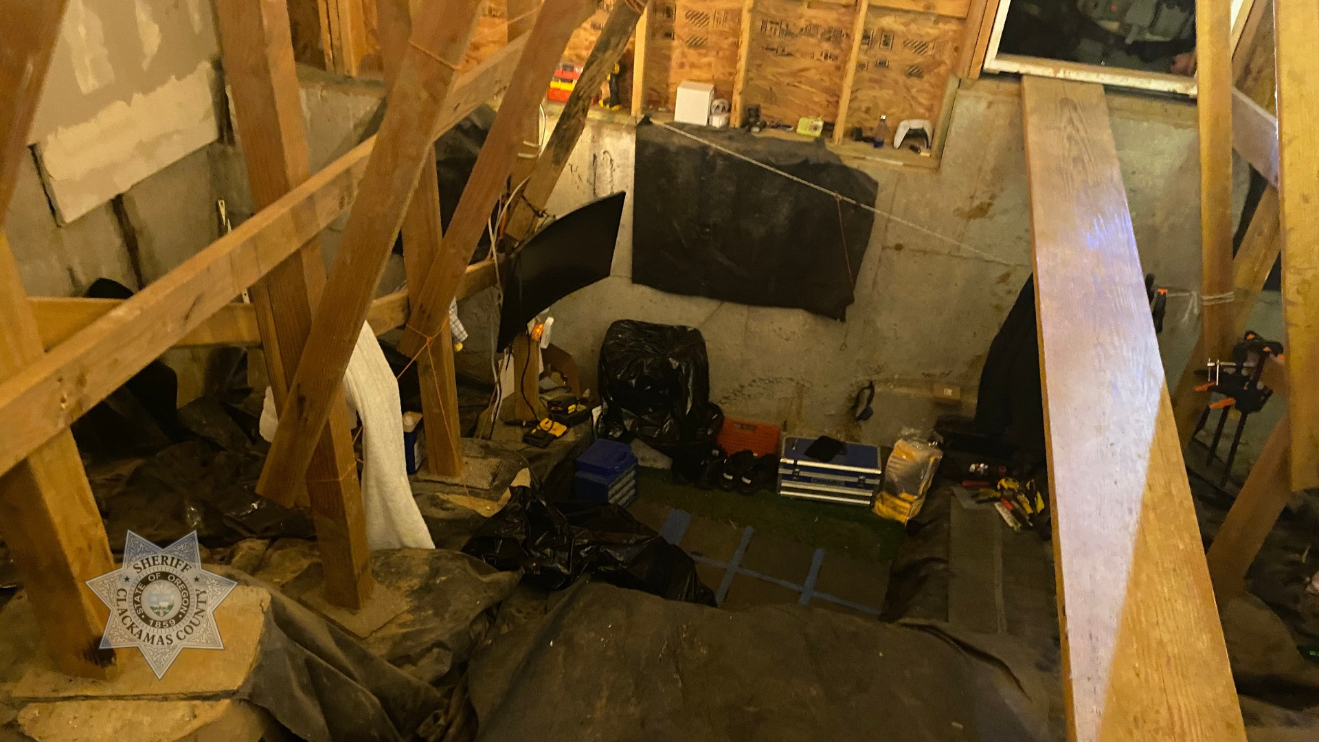 오리건주의 한 주택 크롤 스페이스를 개조해 만든 보금자리[클래커머스 카운티 보안관 사무실][클래커머스 카운티 보안관 사무실]남성은 1급 침입죄 및 마약 소지 혐의로 수감됐으며, 보석금은 7만5천 달러(한화 약 1억 400만 원)로 책정됐습니다.