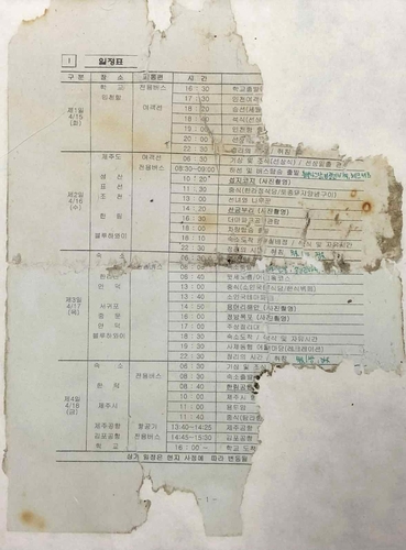 세월호 침몰 참사 사고수학여행을 앞둔 학생들의 마음을 엿볼 수 있는 달력, 참사 이후 세월호를 인양하는 과정에서 발견된 수학여행 일정표 등이 포함됐습니다.