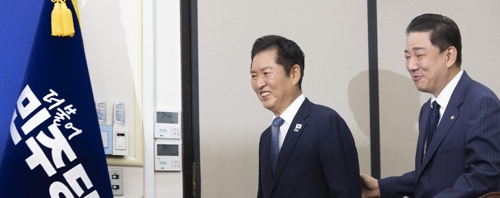 <저작권자(c) 연합뉴스, 무단 전재-재배포, AI 학습 및 활용 금지>미소 되찾은 민주당 정청래ㆍ김병기