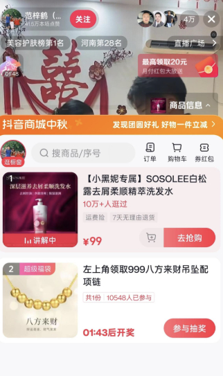 여성은 라이브 커머스 방송을 하듯 1.99위안 (우리 돈 380원) 수분 크림과 99위안(우리 돈 1만 9천 원) 샴푸, 헤어 드라이기 등을 소개했습니다.