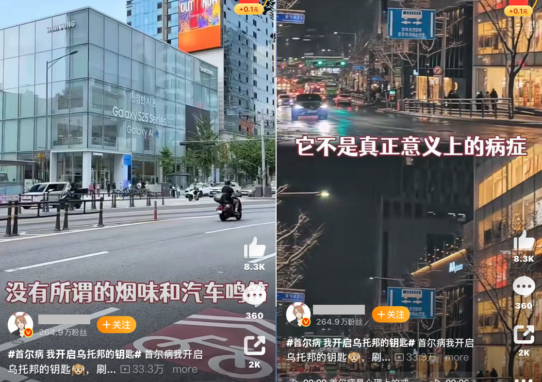 최근 중국 SNS 웨이보와 더우인에서는 ‘서울병’을 주제로 한 게시물이 잇따라 올라오고 있습니다.