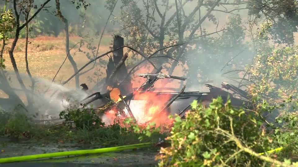 충돌 여파로 차에 불이 붙었고, 결국 운전자(43)와 동승자 어린이(9) 두 명이 사망했습니다.