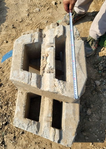 현장에서 확인된 설계보다 작은 크기의 옹벽 블록[오산시 제공. 재판매 및 DB 금지][오산시 제공. 재판매 및 DB 금지]뿐만 아니라 옹벽을 쌓는 데 사용된 블록 역시 설계도서상에는 가로 456㎜, 세로 527㎜, 높이 200㎜의 블록을 사용한다고 돼 있지만, 실제 사용된 블록은 가로 450㎜, 세로 400㎜, 높이 200㎜로 더 작았습니다.
