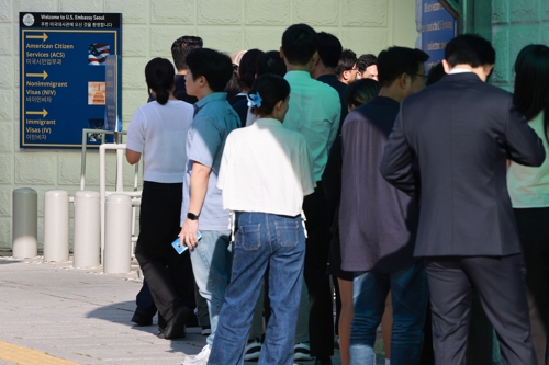 <저작권자(c) 연합뉴스, 무단 전재-재배포, AI 학습 및 활용 금지>미국 비자 발급 위해 미대사관 찾은 시민들