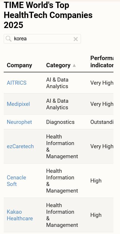 타임은 세계 최고 헬스테크 기업을 선정하기 위해 글로벌 데이터 전문기관 스태티스타(Statista)와 협력해 평가를 실시했습니다.