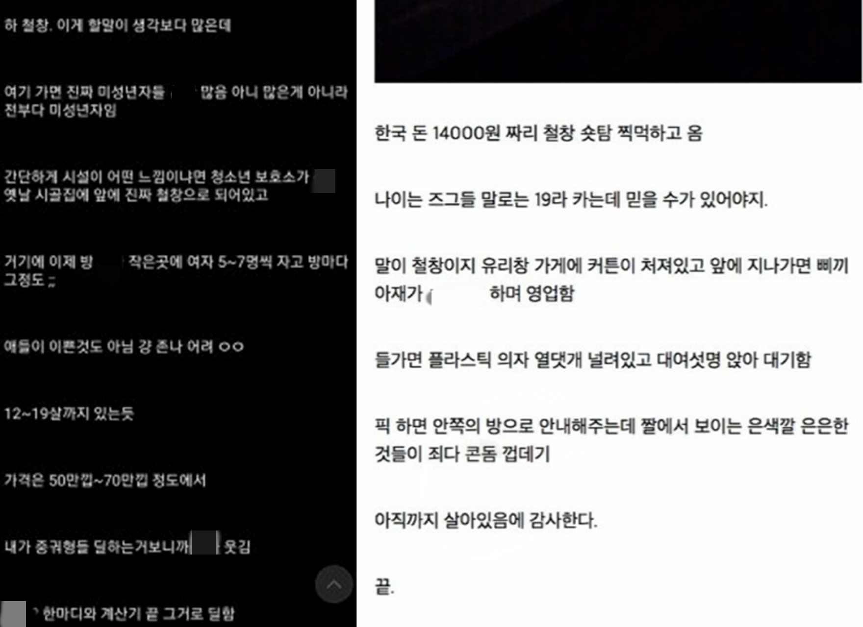 작성자는 “철창 같은 좁은 방에서 미성년자로 보이는 여성들이 성매매를 하고 있다”는 내용의 글을 올렸습니다.