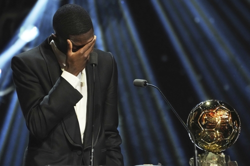 햄스트링 부상으로 이날 치러진 PSG의 경기에 빠지고 발롱도르 시상식에 참석한 뎀벨레는 호나우지뉴로부터 자신의 이름이 불리자 벅찬 감정을 감추지 못했습니다.