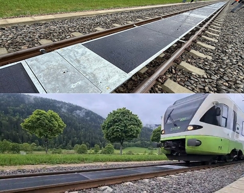 철도 선로 위에 카펫형 태양광 설비를 구축해 전력을 생산하는 사업으로, 철로 위를 주행하는 자동화 설비가 패널을 신속하게 설치하고 유지보수 작업도 수행합니다.