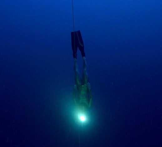 그는 산소통 없이 헤드라이트와 두 개의 바이핀, 가이드 로프만으로 지중해의 가장 깊은 곳까지 도달한 사람이 됐습니다.