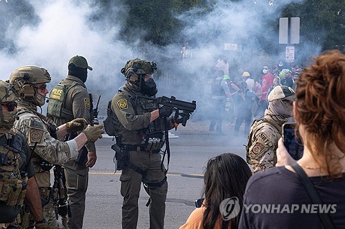연방 요원들은 최루탄과 페퍼볼(매운 분말을 담은 고무 또는 플라스틱 공)을 발사해 시위대 해산을 시도했고, 경찰 수십명이 현장에 도착해 연방 요원들과 시위대 사이에 인간 방벽을 형성했습니다.