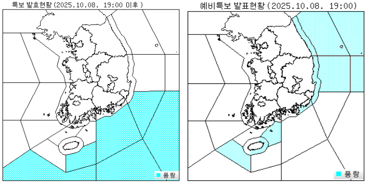 풍랑특보(왼쪽)와 예비특보(오른쪽)[기상청 제공][기상청 제공]연합뉴스TV 기사문의 및 제보 : 카톡/라인 jebo23