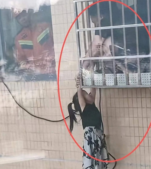 우 씨는 창문 밖으로 몸을 내밀어 아이 손을 잡았고, 자식들에게는 빨리 신고하라고 소리쳤습니다.