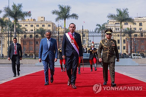 대통령궁 도착한 호세 헤리 페루 신임 대통령(가운데)[AFP=연합뉴스 제공][AFP=연합뉴스 제공]