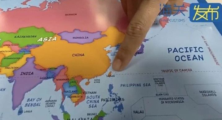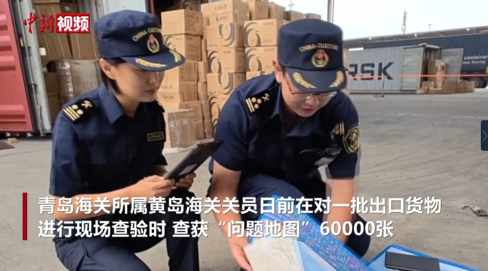 현지 시간 13일 시나 파이낸스 등 현지 매체에 따르면, 최근 칭다오 지역의 황다오 세관은 수출품을 검사하는 과정에서 6만 개의 '문제 지도'를 압수했다고 밝혔습니다.