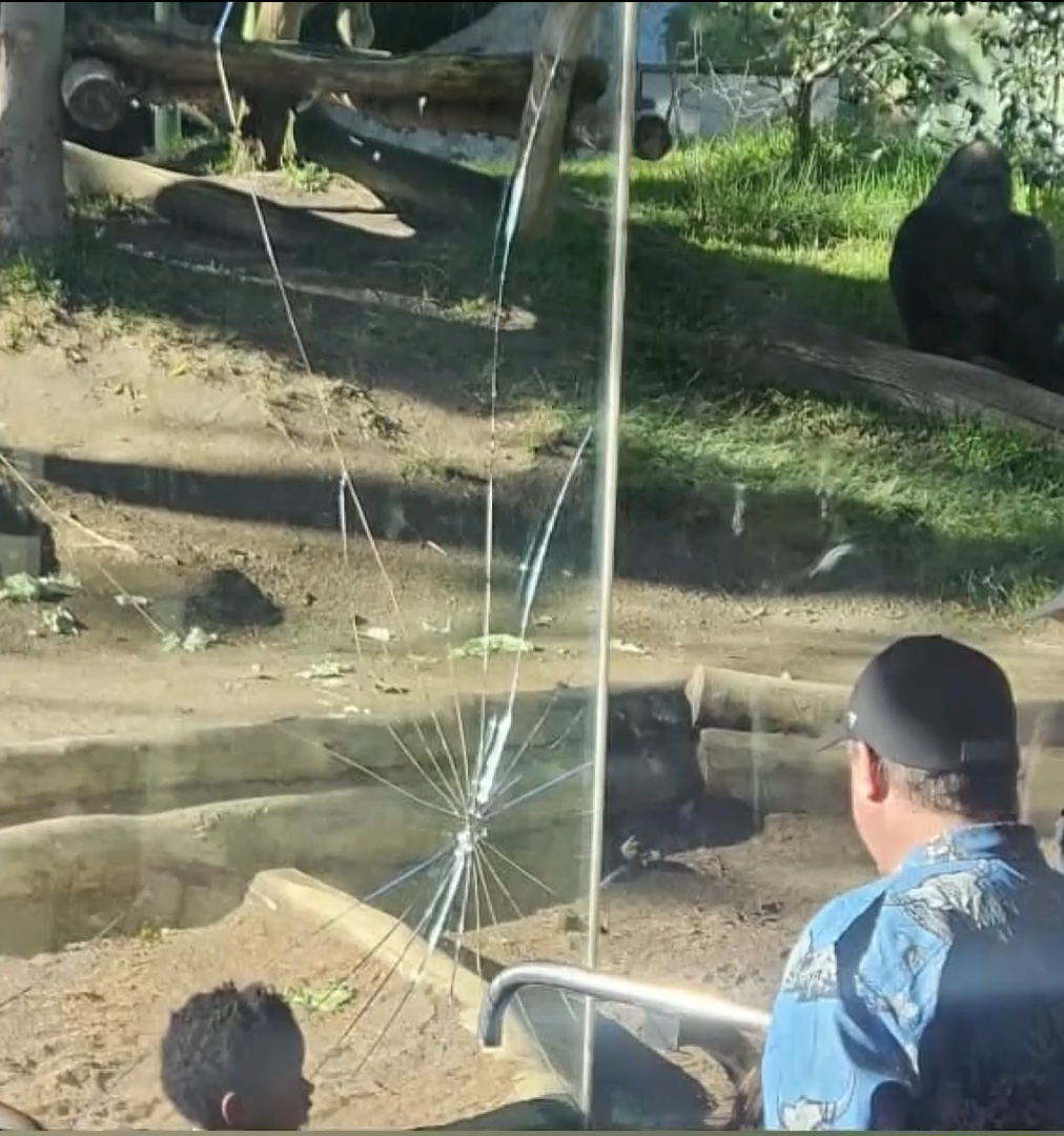 현지시간 12일 미국 CBS8 뉴스에 따르면, 11일 서부 로랜드 고릴라 '데니'가 동물원 고릴라 포레스트에 설치된 3겹 강화유리 중 한겹을 깨드렸습니다.