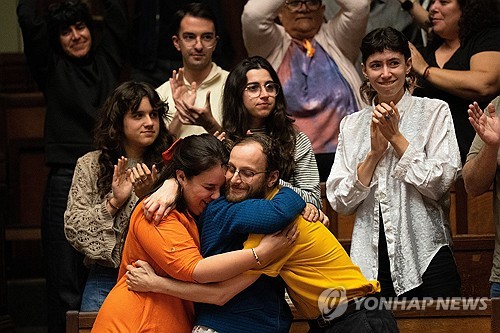 안락사 승인 법안 통과에 기뻐하는 안락사 지지 우루과이 시민들[AP=연합뉴스 제공][AP=연합뉴스 제공]우루과이에서 현지시간 15일 안락사 승인 법안이 통과됐다고 AP통신 등이 전했습니다.