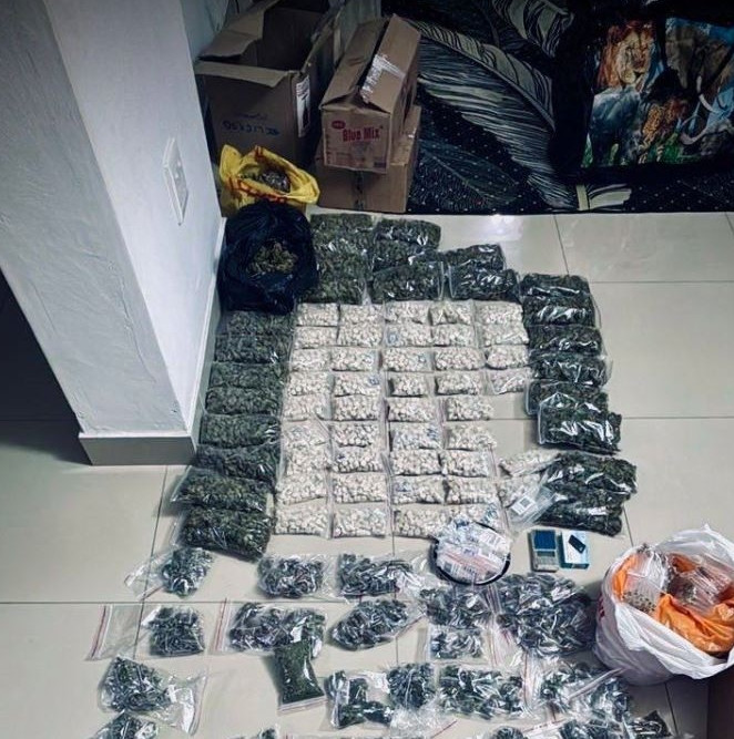 현지 경찰은 이 아파트에서 엑스터시, 맨드락스, 크랙 코카인, 대마초 등 마약 제조 및 포장에 사용하는 재료를 압수했습니다.