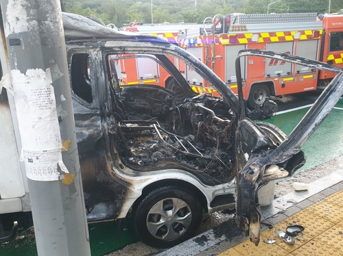 화물차에서 난 불은 출동한 소방대에 의해 오후 5시 8분쯤 완전히 꺼졌고, 이 사고로 다친 사람은 없는 것으로 파악됐습니다.