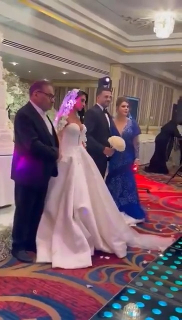 영상에서 샴카니의 딸은 히잡을 쓰지 않은 채 오프숄더 웨딩드레스를 입고 있었습니다.