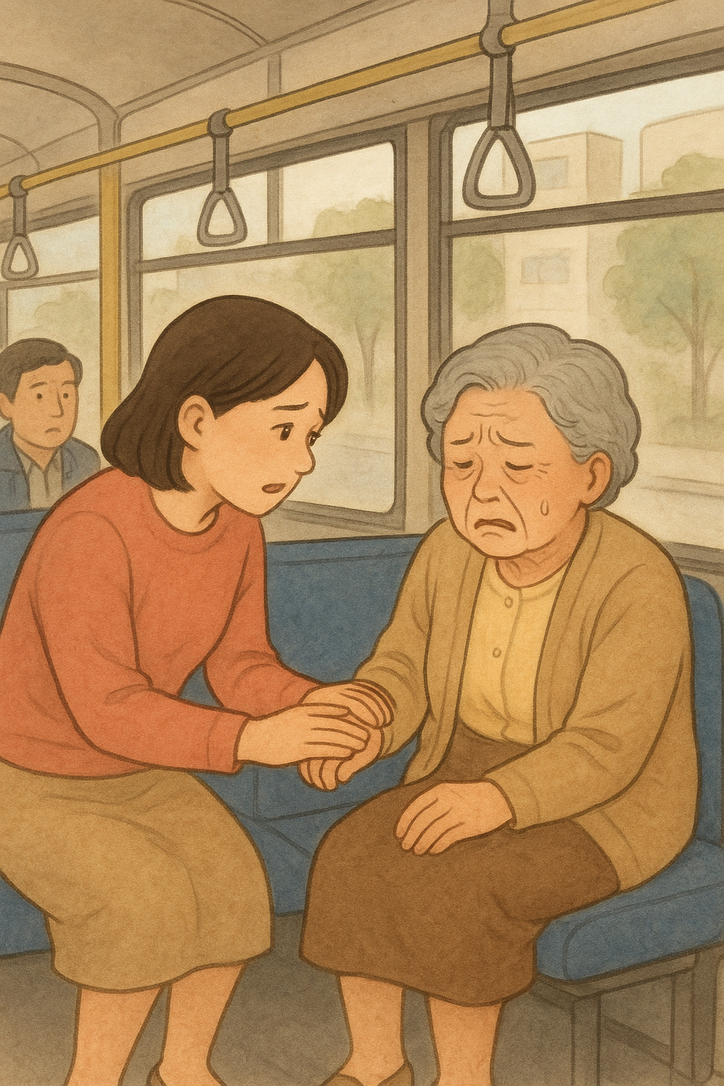 [AI로 생성한 이미지][AI로 생성한 이미지]버스 안에서 '소변 실수'를 한 할머니를 도운 한 여성의 사연이 전해져 누리꾼들에게 감동을 주고 있습니다.